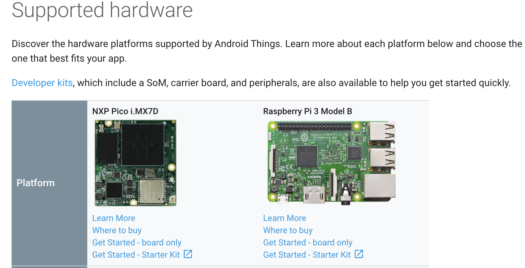 Android Things 作为 Google 旗下的一款操作系统 (OS),能够帮助开发者规模化开发和维护物联网设备。同时推出的 Android Things 控制台 (Android Things Console) 更是将简化产品开发推向极致,帮助开发者定期获取 Google 最新稳定性修复包以及安全升级包,从而实现从发布、管理到设备更新的无缝连接。Android Things官方最新支持到树莓派3B,树莓派3B+暂时不支持。
