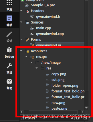 1.在QT项目中,菜单和工具栏图标一定要添加到项目资源文件中(在资源编辑器中Add Prefix后,再添加文件,关闭资源编辑器后自动将图标文件添加到资源列表中),如下图显示:
