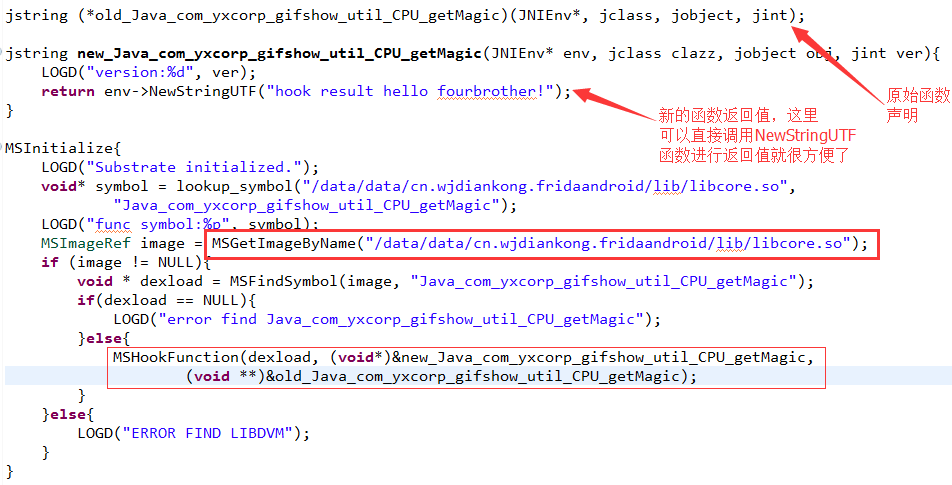 -  # 如下代码为hook微信(测试版本为6.3.13,不同版本由于混淆名字