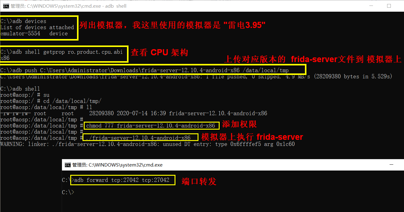 雷电3版本模拟器上 frida-server 跑不起来。雷电4模拟器可以。https://blog.csdn.net/ugooo/article/details/112045478