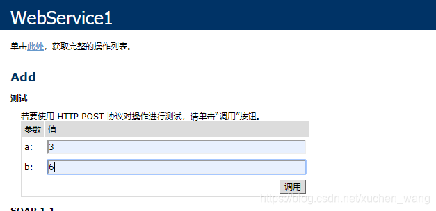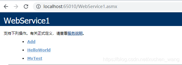 5、在URL输入 直接运行 WebService1.asmx 后的调试地址,如下图所示: