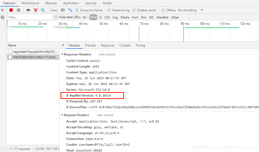 默认情况下,ASP.NET MVC网站会把版本号提供给浏览器,如下图所示: