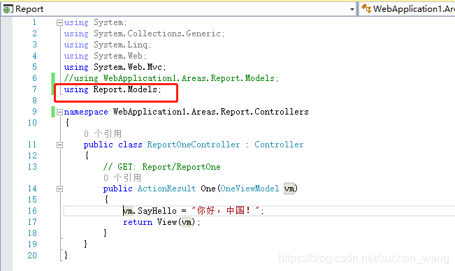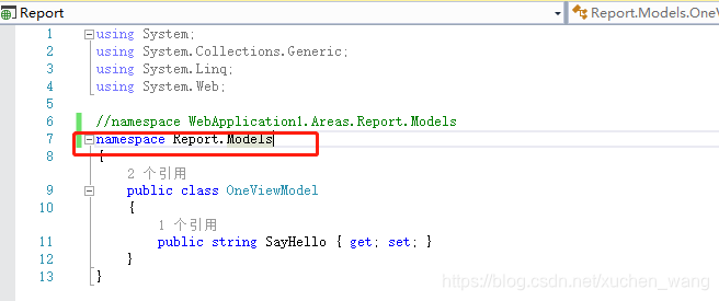 修改ReportOneControl中对OneViewMode引用的命名空间,如下图所示: