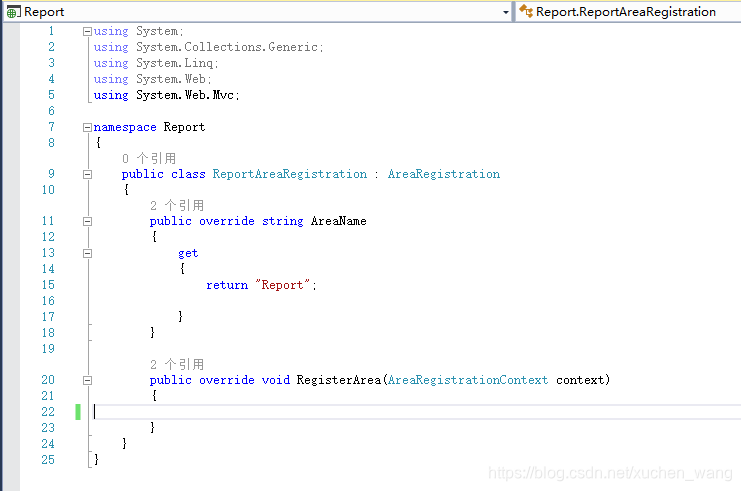 ReportAreaRegistration.cs文件中的代码如下图所示:
