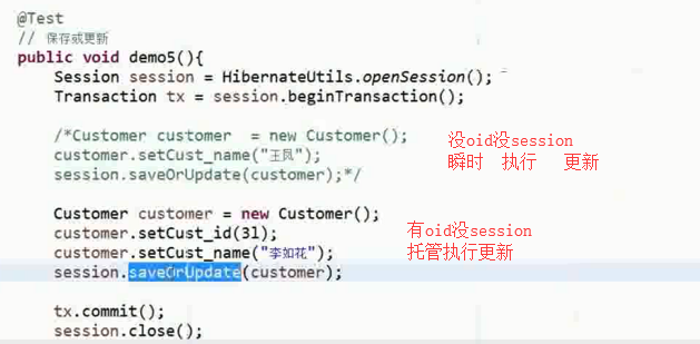 - session.save(c); // 持久化状态, 有id,有关联(返回id)下面直到session关闭之前的状态都是持久态