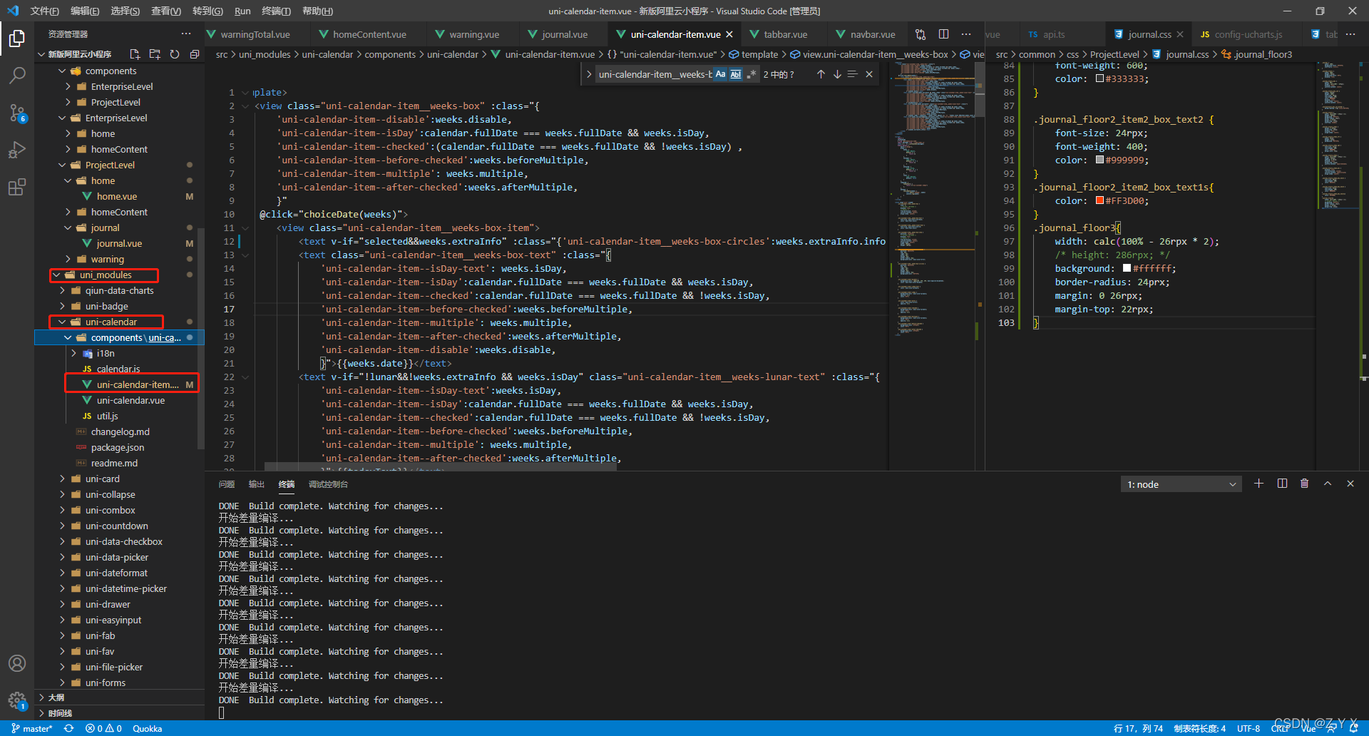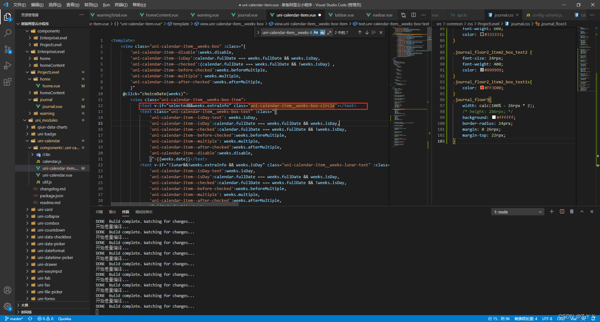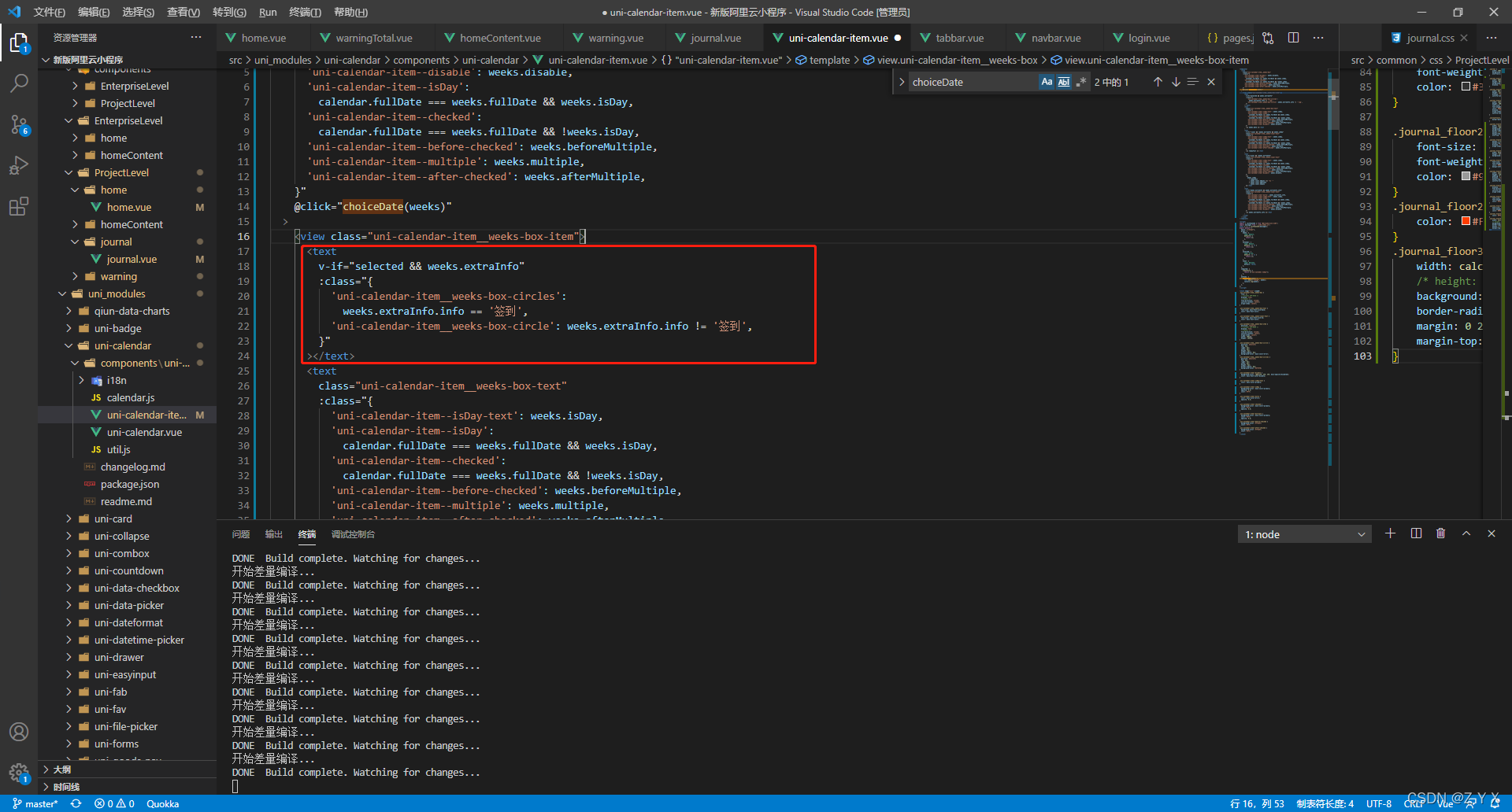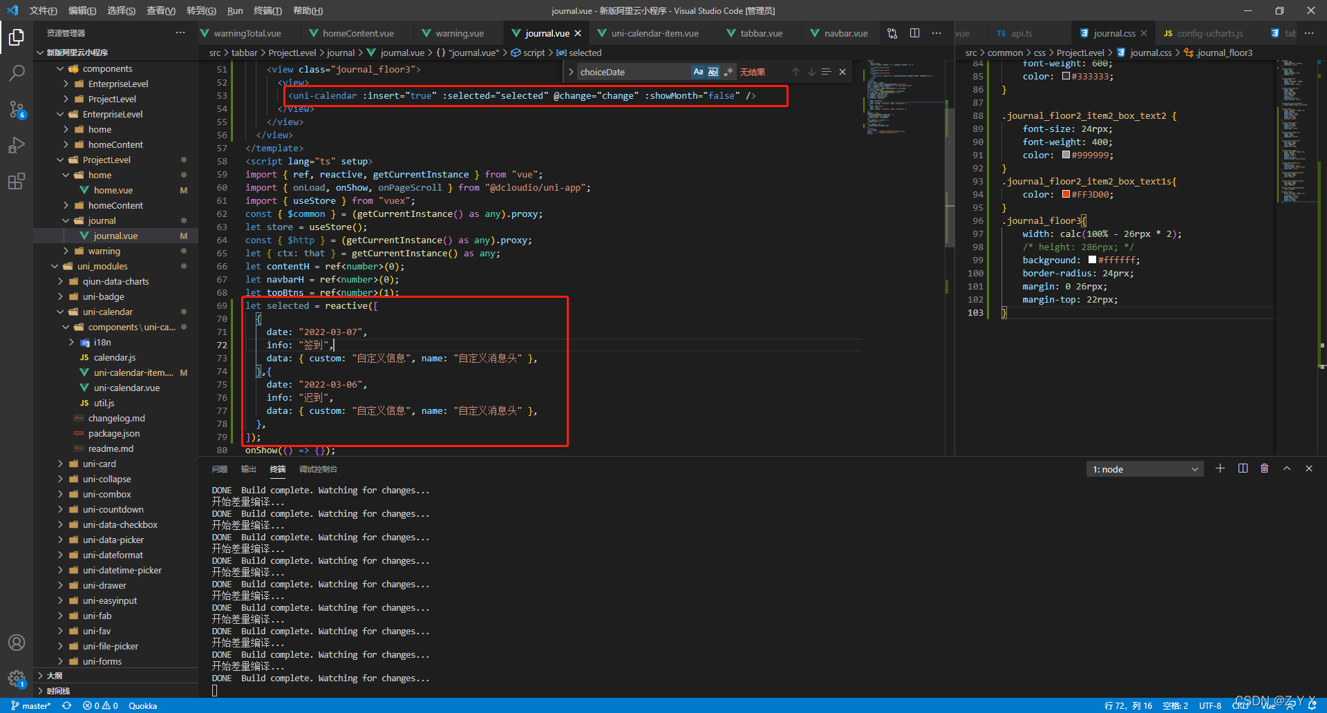 1.公司要实现打卡功能,发现uni-calendar插件不支持不同打点颜色的效果,所以就自己改一下源码