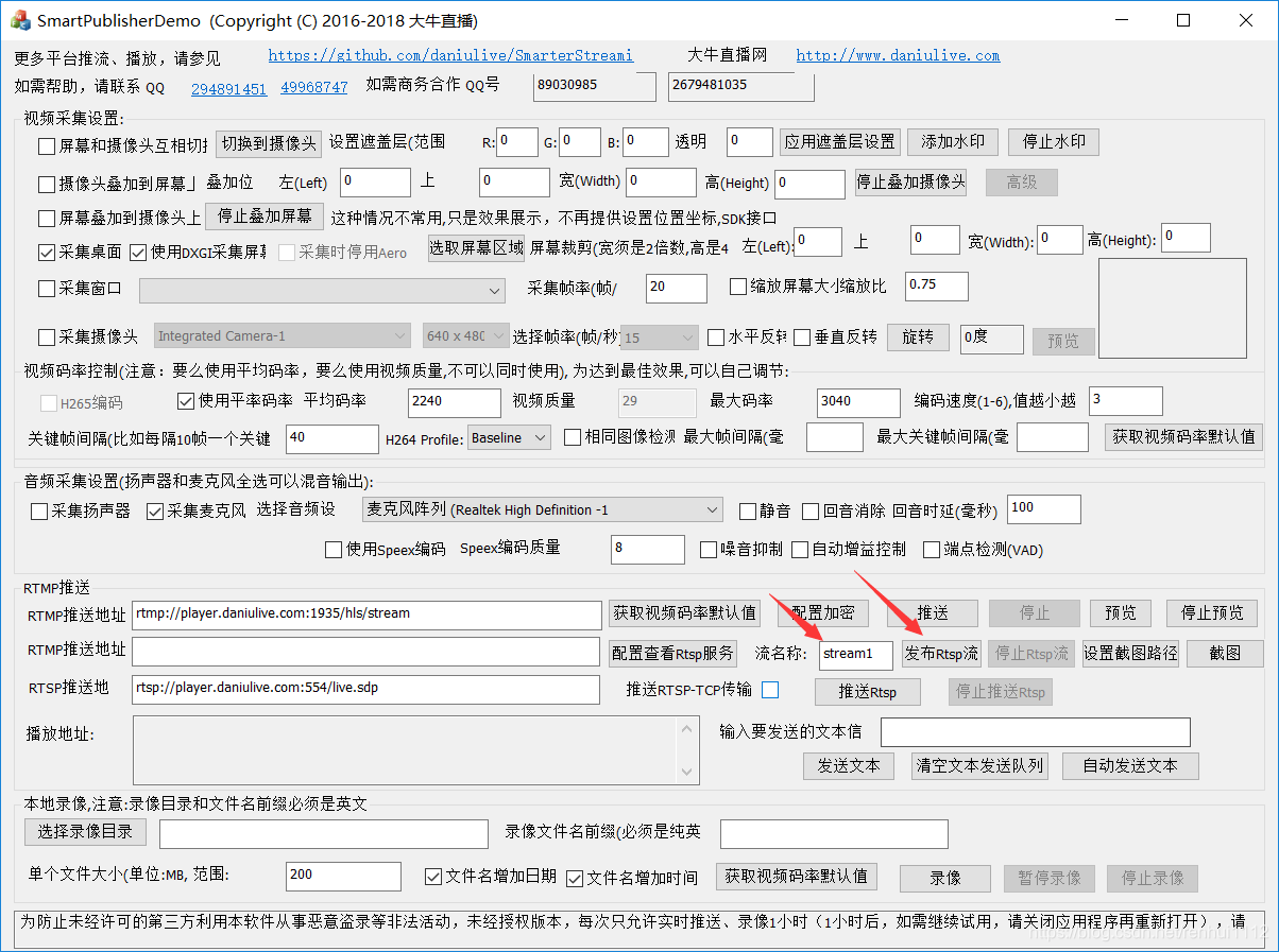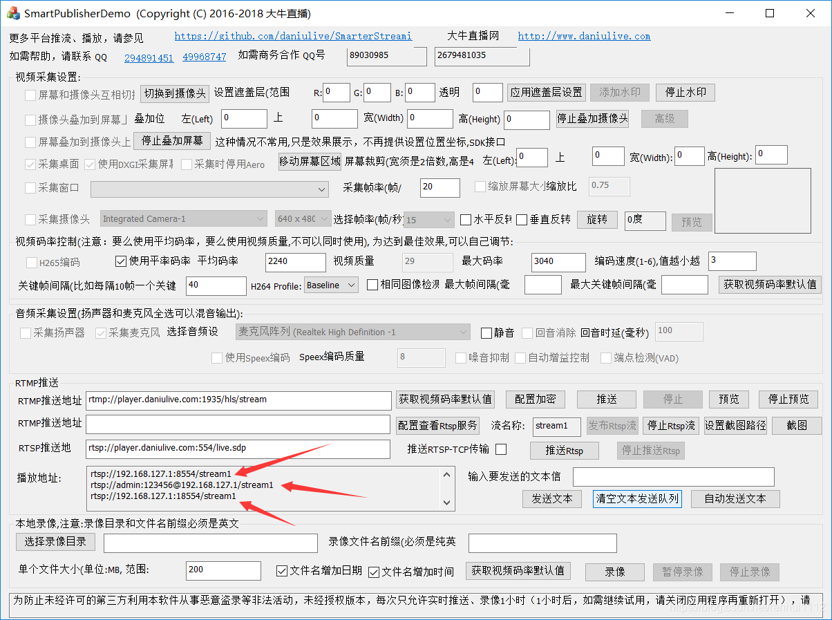 如需要下载相关demo,可以到 github 下载参考(Windows平台RTMP|RTSP推送SDK、内置RTSP服务SDK、录像SDK(C++) Demo工程本地下载)