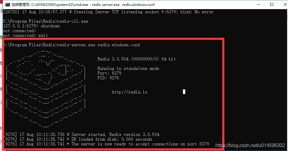 然后重新运行redis-server.exe redis.windows.conf,启动成功!