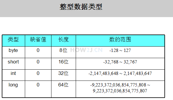10、java中有8种基本类型变量:分别是整形4种(btye、short、int、long)、字符型1种(char)、浮点型2种(floa、default)、布尔型1种(boolean)。注意:对象、数组都是引用类型,整形类型数据区分如下图: