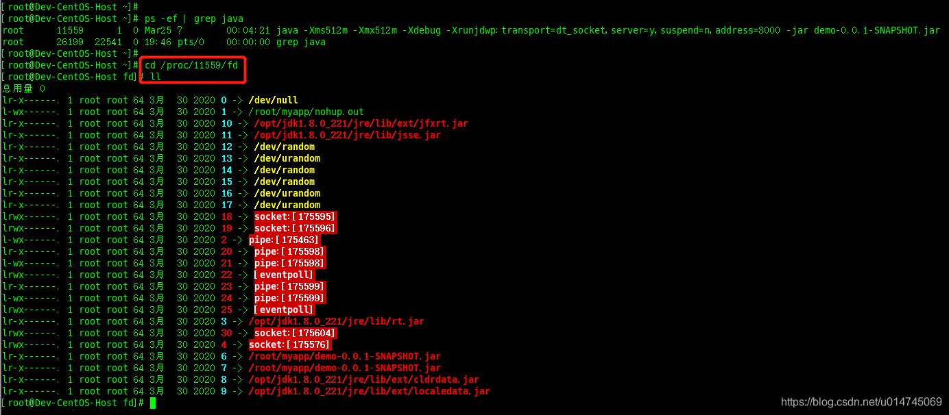 最常见的文件描述符是 0 (标准输入)、1 (标准输出)、2(标准错误),它们被维护在进程的 fd 目录下: