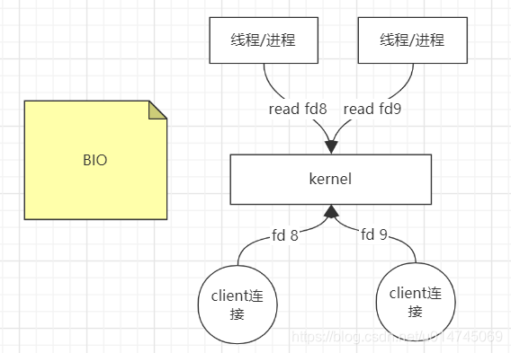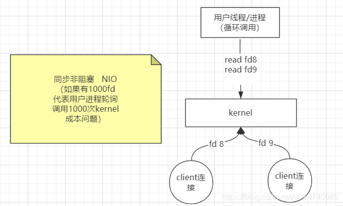 应用进程通过系统内核的 read()系统调用来访问 Socket fd,由于是阻塞的,应用程序的线程是阻塞的,必须收到 fd 返回的数据响应后,才能够继续向下执行。那么,对于一个网络程序,多个TCP请求过来时,应用进程必须分配对等数量的线程才能够完成处理,因此,这会造成极大的资源浪费,例如CPU的效率,线程变多,忙于线程调度,而且线程的内存占用也会增多。