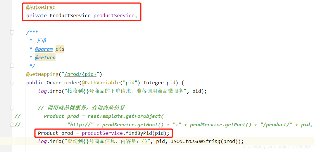 public interface ProductService {@GetMapping("/product/{pid}")public Product findByPid(@PathVariable("pid") Integer pid);