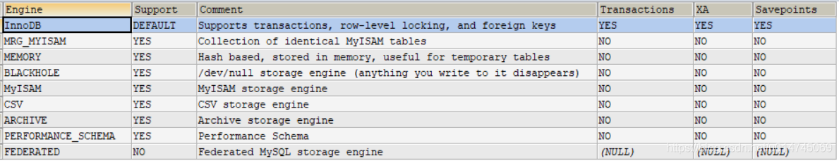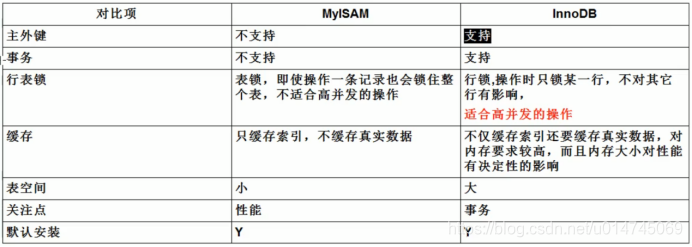 关于InnoDB和MyISAM的常规比较,下表是重点: