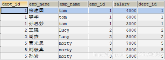 emp 作为主表被全查了出来,并且将 dept 中相关联记录查询出,没有关联的两个部门:财务、市场部并没有被查询出来。