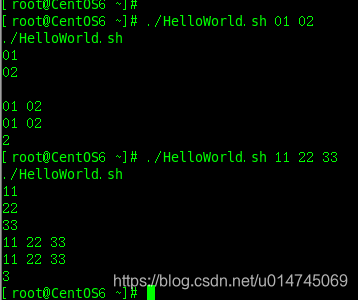演示:在 HelloWorld.sh 中输出这些位置变量参数,然后观察结果:
