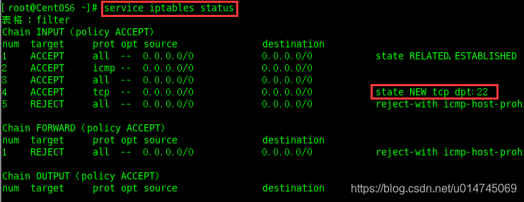 案例:查看Linux 防火墙的情况,关闭并重启防火墙: