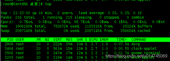 输入 top 命令可以显示上图中的信息,默认每 3 秒刷新一次,如果按下交互键,在排序的同时可以立即刷新列表。输入q 可以退出 top 。
