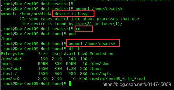 该命令会显示包括我们手动挂载的磁盘,如果使用 umount 卸载磁盘,那么将不会显示: