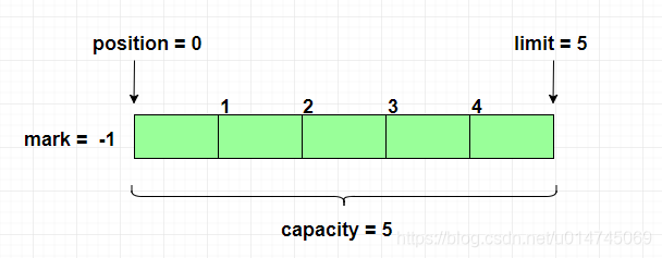 假设我们声明了一个 capacity 为 5 的字节缓冲区:
