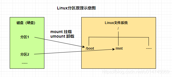 对于Linux来说,无论有几个分区,分给哪一目录使用,它归根结底就只有一个根目录 / ,一个独立且唯一的文件结构,Linux 中每个分区都是用来组成整个文件系统的一部分。