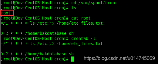用户任务调度:通过 crontab -e 进行编写的任务,都属于用户任务调度,这类任务可以包括:用户数据备份、定时邮件提醒等。Linux 系统会将所有用户设置的定时任务存放到 /var/spool/cron 目录中,文件名与用户名一致: