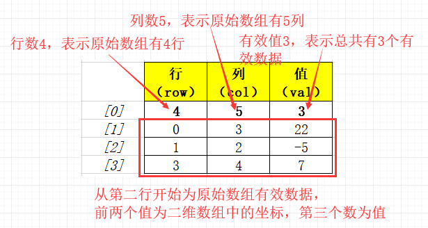 那么这个标准二维数组对应的稀疏数组的结构就如下图所示: