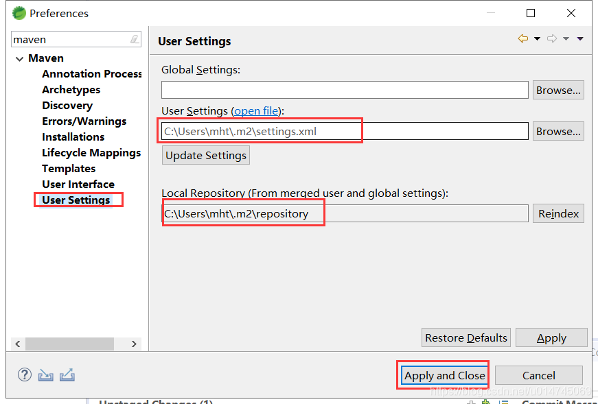 2、点击 【Apply】按钮,或 【Apply and Close】应用并退出。