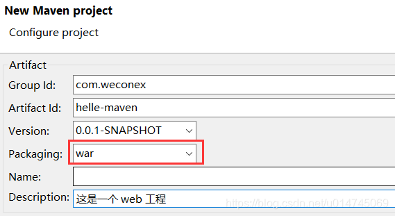 不过在打包方式上, web 工程需要选择 war包: