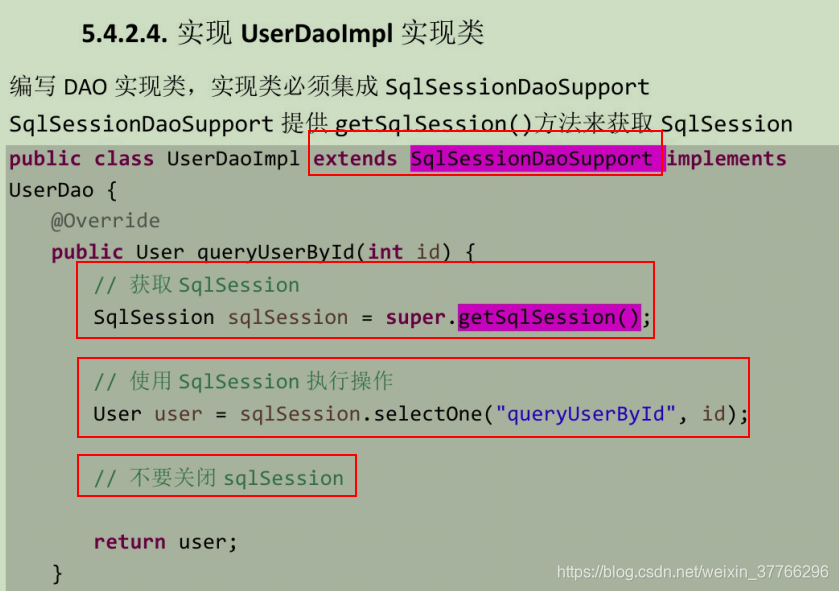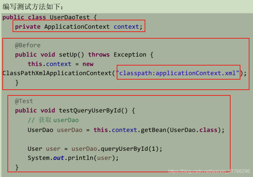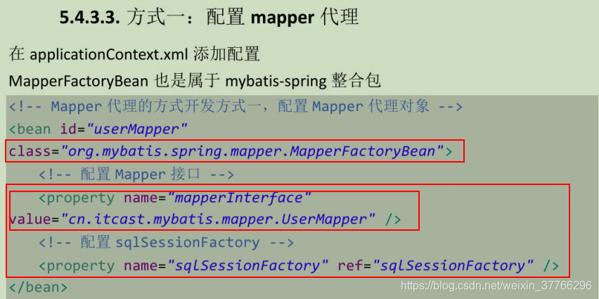 <beans xmlns="http://www.springframework.org/schema/beans"xmlns:context="http://www.springframework.org/schema/context" xmlns:p="http://www.springframework.org/schema/p"xmlns:aop="http://www.springframework.org/schema/aop" xmlns:tx="http://www.springframework.org/schema/tx"xmlns:xsi="http://www.w3.org/2001/XMLSchema-instance"xsi:schemaLocation="http://www.springframework.org/schema/beans http://www.springframework.org/schema/beans/spring-beans-4.0.xsdhttp://www.springframework.org/schema/context http://www.springframework.org/schema/context/spring-context-4.0.xsdhttp://www.springframework.org/schema/aop http://www.springframework.org/schema/aop/spring-aop-4.0.xsd http://www.springframework.org/schema/tx http://www.springframework.org/schema/tx/spring-tx-4.0.xsdhttp://www.springframework.org/schema/util http://www.springframework.org/schema/util/spring-util-4.0.xsd"><!-- 加载配置文件 --><context:property-placeholder location="classpath:Config/db.properties" /><!-- 数据库连接池 --><bean id="dataSource" class="org.apache.commons.dbcp.BasicDataSource"destroy-method="close"><property name="driverClassName" value="${jdbc.driver}" /><property name="url" value="${jdbc.url}" /><property name="username" value="${jdbc.username}" /><property name="password" value="${jdbc.password}" /><!-- 连接池的最大数据库连接数 --><property name="maxActive" value="10" /><!-- 最大空闲数 --><property name="maxIdle" value="5" /></bean><!-- SqlSessionFactory配置 --><bean id="sqlSessionFactory" class="org.mybatis.spring.SqlSessionFactoryBean"><property name="dataSource" ref="dataSource" /><!-- 加载mybatis核心配置文件 --><property name="configLocation" value="classpath:Config/SqlMapConfig.xml" /><!-- 别名包扫描 --><property name="typeAliasesPackage" value="pojo"/></bean><!-- 传统Dao配置,加载实现类 --><bean class="dao.impl.UserDaoImpl"><property name="sqlSessionFactory" ref="sqlSessionFactory" /></bean></beans>