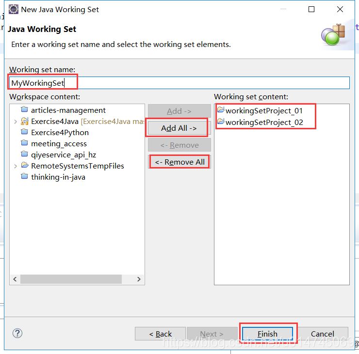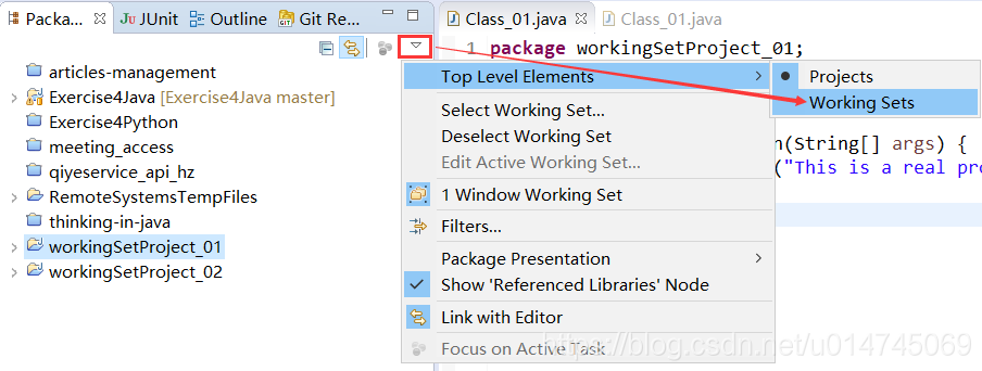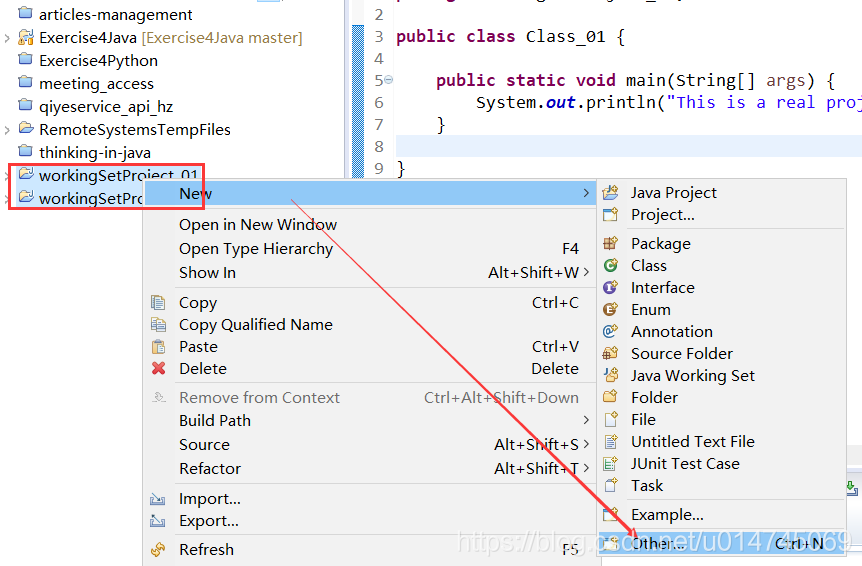 使用working set的方式很随意,不论你是直接创建working set,或者直接在选中项目并新建working set,都是可以的。