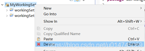 如果我们希望删除working set ,可以直接在选中working set ,右键删除:
