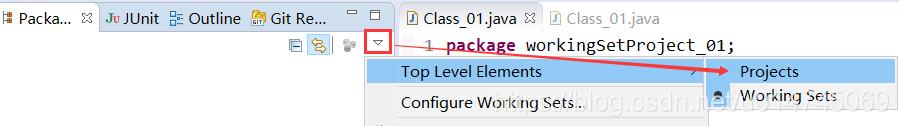 点击Finish之后,页面不会有任何变化,那么如何查看我们新建的working set 呢?