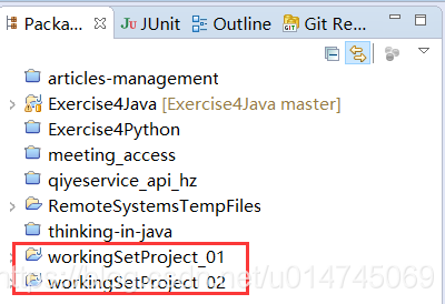 working set是将workspace中的项目进行虚拟的归类,你可以理解为在Eclipse中为多个项目创建了一个父级文件夹,但实际上,在磁盘空间中并没有真正创建这个文件夹。