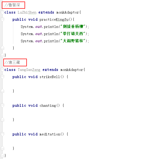 鲁智深和唐三藏想调用哪个方法就去实现适配器的哪个方法: