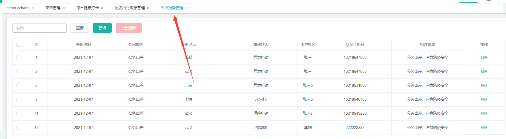 外出报备申请: