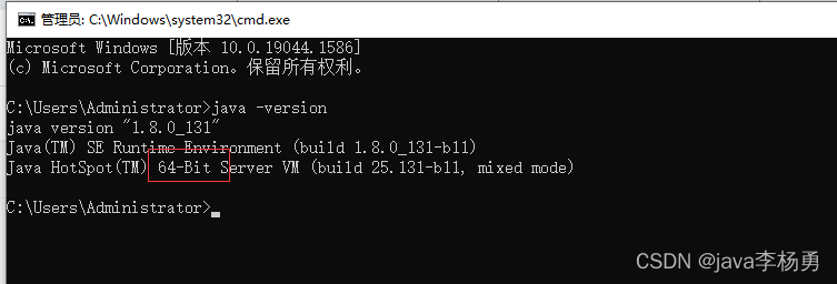 jdk : 进入cmd,输入java -version命令,出现如下信息。如果显示了64bit就是64位,没有就是32位。