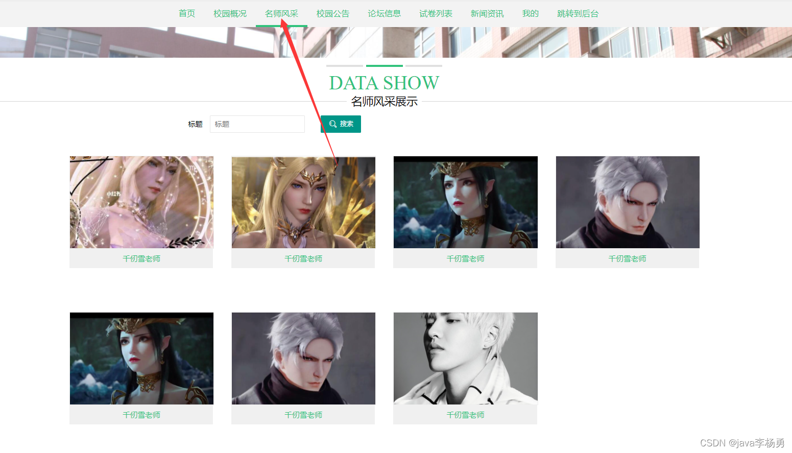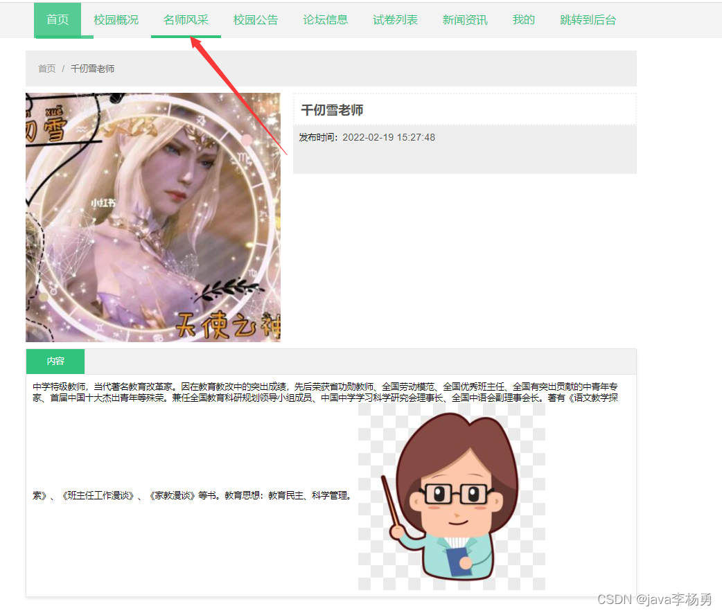 名师风采,在名师风采页面通过填写标题、图片、内容、发布时间等信息进行收藏
