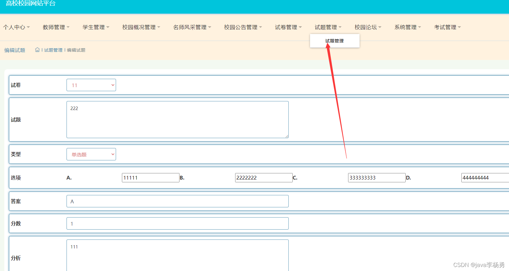 试卷试题管理: