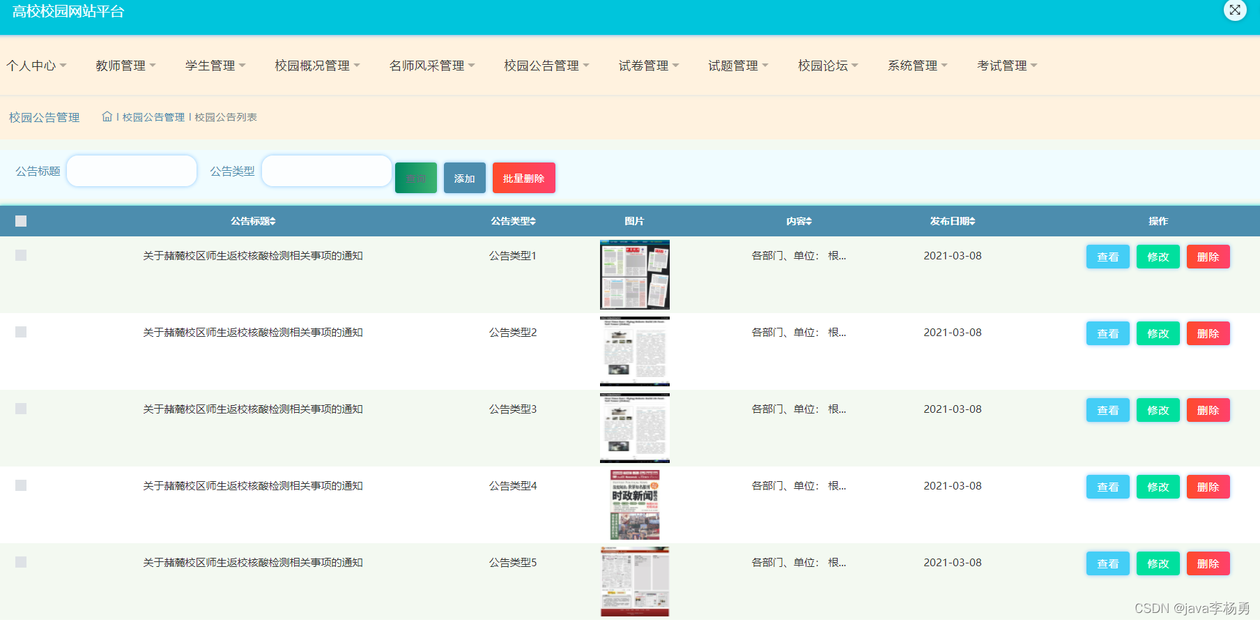 校园公告管理: