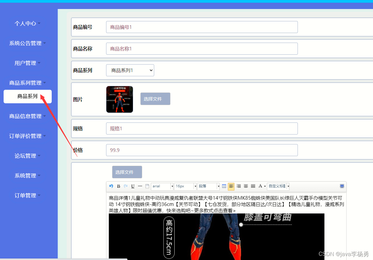 商品详情修改: