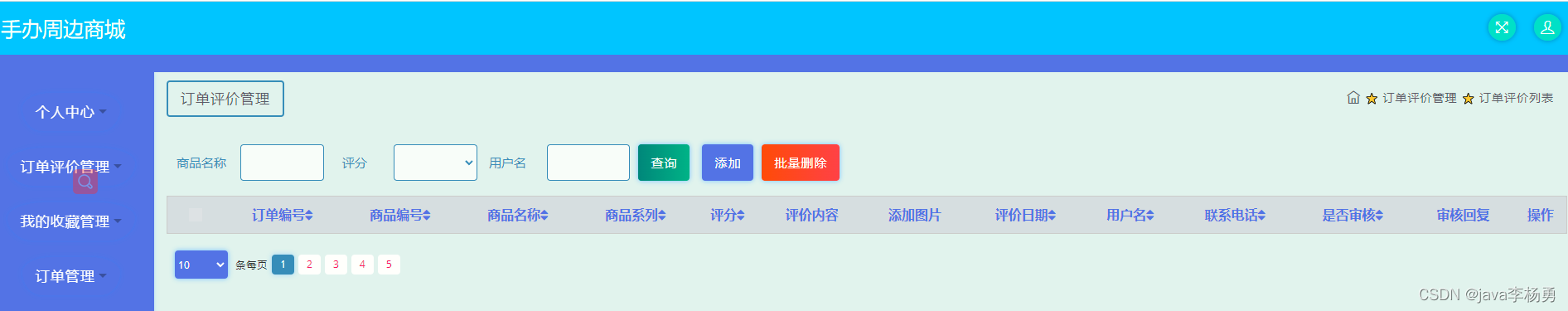 商品评价管理: