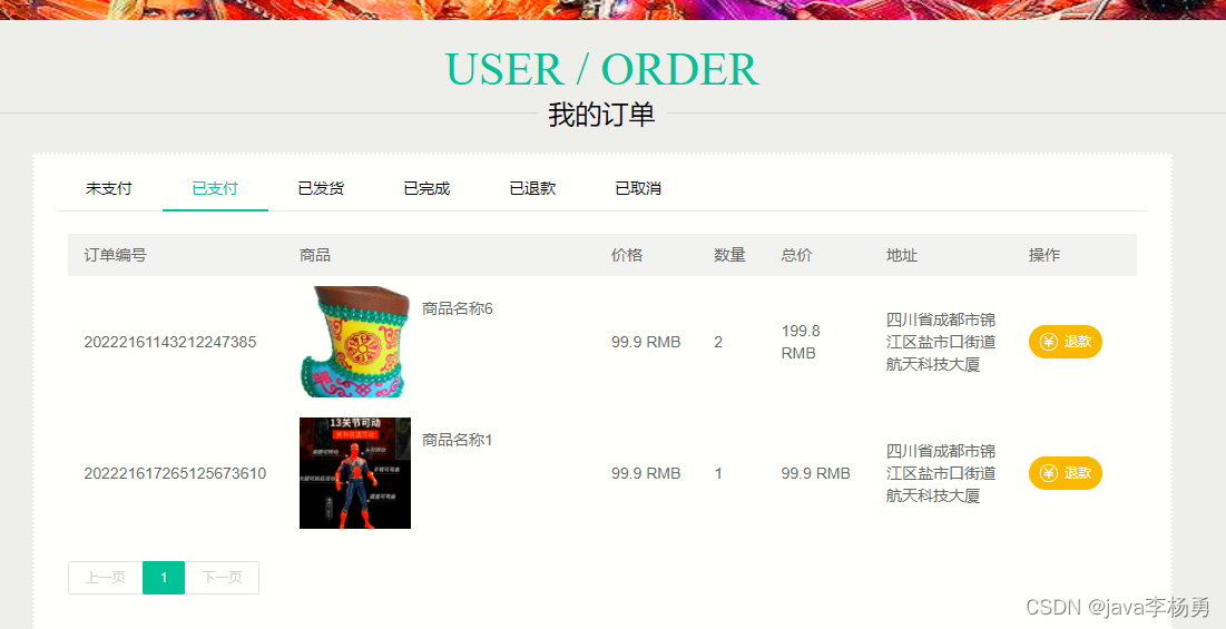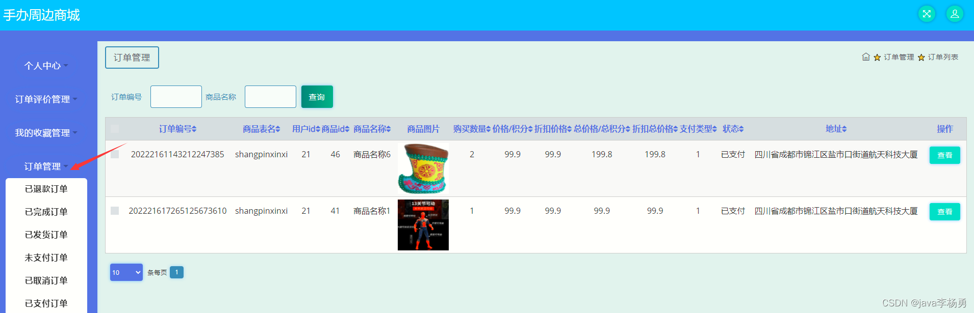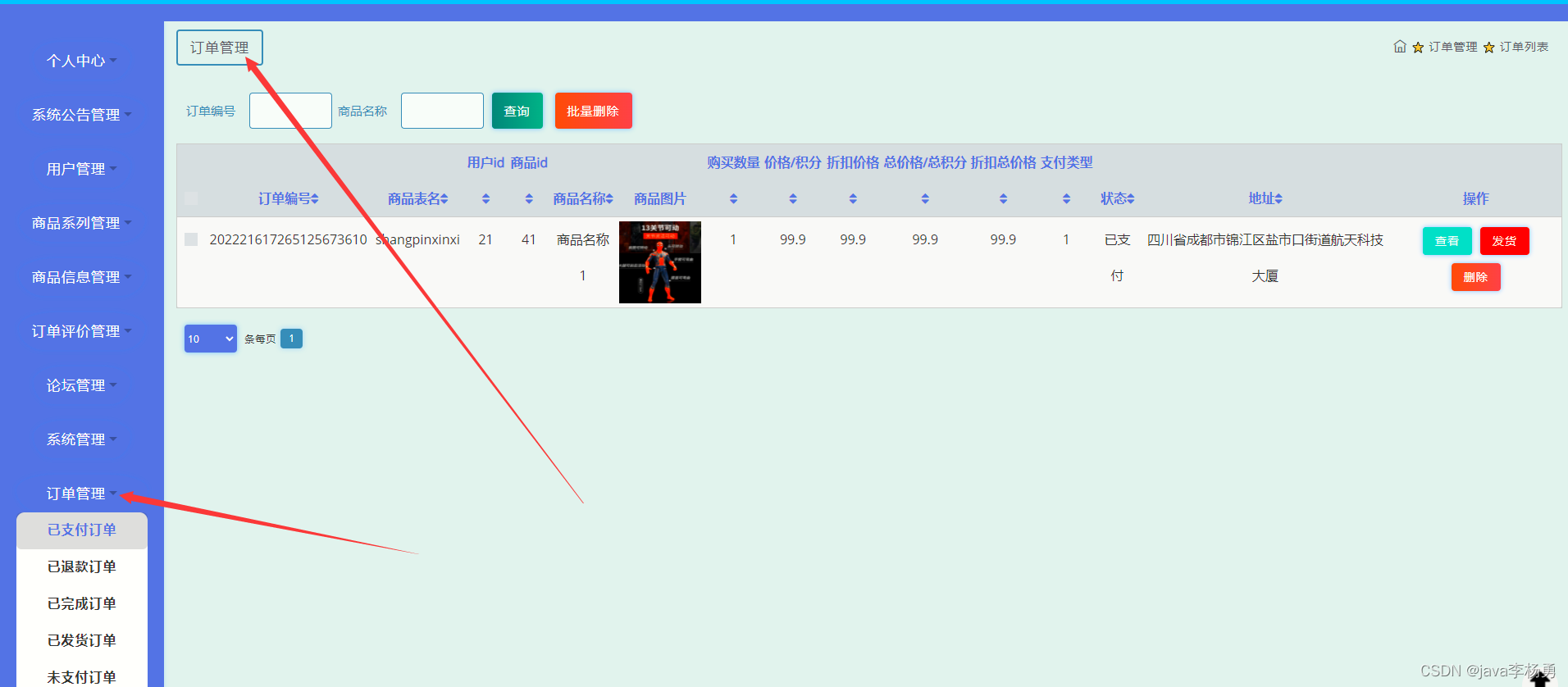 订单信息管理: