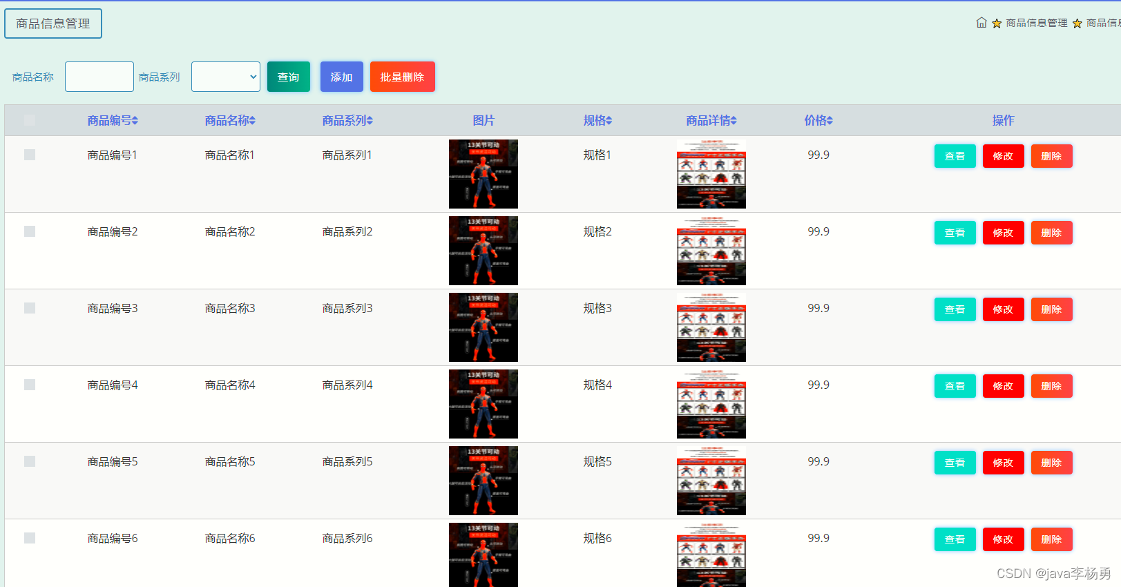 商品信息管理: