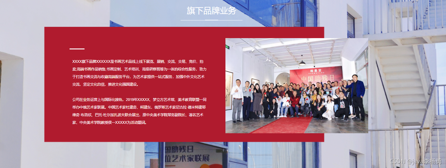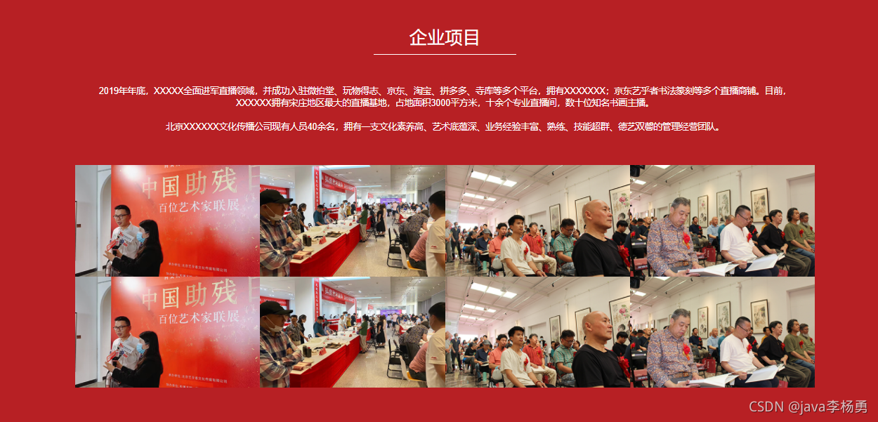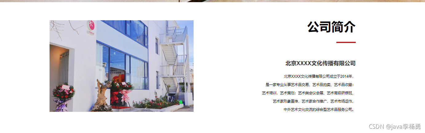 <nav class="navbar navbar-default navbar-fixed-top"><div class="container"><div class="navbar-header"><a href=""><img src="./files/logo.png" class="logo" alt="翰墨堂书画"></a> </div><div id="navbar" class="navbar-collapse collapse"><div class="row dh"><div class="col-xs-12 col-sm-12 col-md-12"><ul class="nav navbar-nav navbar-nav-c"><li class="active" id="nv0"><a href="#sy ">首 页</a> </li><li class="dropdown " id="nv1"><a href="#gsjj " title="关于我们">公司简介</a></li><li class="dropdown " id="nv2"><a href="#hzjl2" title="合作交流">合作交流</a></li><li class="dropdown " id="nv3"><a href="#yewu-1 " title="旗下品牌业务">旗下品牌业务</a></li><li class="dropdown " id="nv4"><a href="#qyxm " title="企业项目">企业项目</a></li><li class="dropdown " id="nv5"><a href="#lxwm " title="联系我们">联系我们</a></li></ul></div></div></div><!--/.nav-collapse --></div></nav></header><script type="text/javascript">$('.bxslider').bxSlider({adaptiveHeight: true,infiniteLoop: false,hideControlOnEnd: true,auto: true});</script><div id="gsjj"><div class="container aboutus"><div class="row"><div class="col-xs-12 col-sm-12 col-md-6 jianjie"><h2>公司简介</h2><p class="pjj"></p><p class="ptm">北京XXXX文化传播有限公司</p><p class="about_contents">北京XXXX文化传播有限公司成立于2014年,<br/> 是一家专业从事艺术品交易、艺术品拍卖、艺术品收藏:<br/> 艺术培训,艺术策划;艺术类会议会展、艺术高级研修班、<br/> 艺术家形象宣传、艺术家合作推广、艺术市场运作、<br/> 中外艺术文化交流的综合型艺术品服务公司。<br/></p><p></p></div><div class="col-xs-12 col-sm-12 col-md-6"><img src="./images/1551343051.jpg" alt="公司简介"></div></div></div></div>