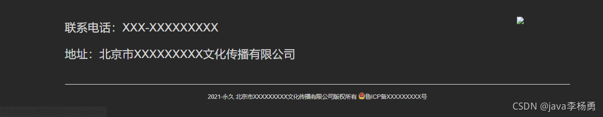 常见网页设计作业题材有 个人、 美食、 公司、体育、 化妆品、 物流、 环保、 书籍、 婚纱、 军事、 游戏、 节日、 戒烟、 电影、 摄影 学校、 旅游、 电商、 宠物、 电器、 茶叶、 家居、 酒店、 舞蹈、 动漫、 明星、 服装、 文化、 家乡、 鲜花、 礼品、 汽车、 其他等网页设计题目, A+水平作业, 可满足大学生网页大作业网页设计需求都能满足你的需求。原始HTML+CSS+JS页面设计, web大学生网页设计作业源码,这是一个不错的响应式艺术培训机构网页设计制作,画面精明,非常适合初学者学习使用。
