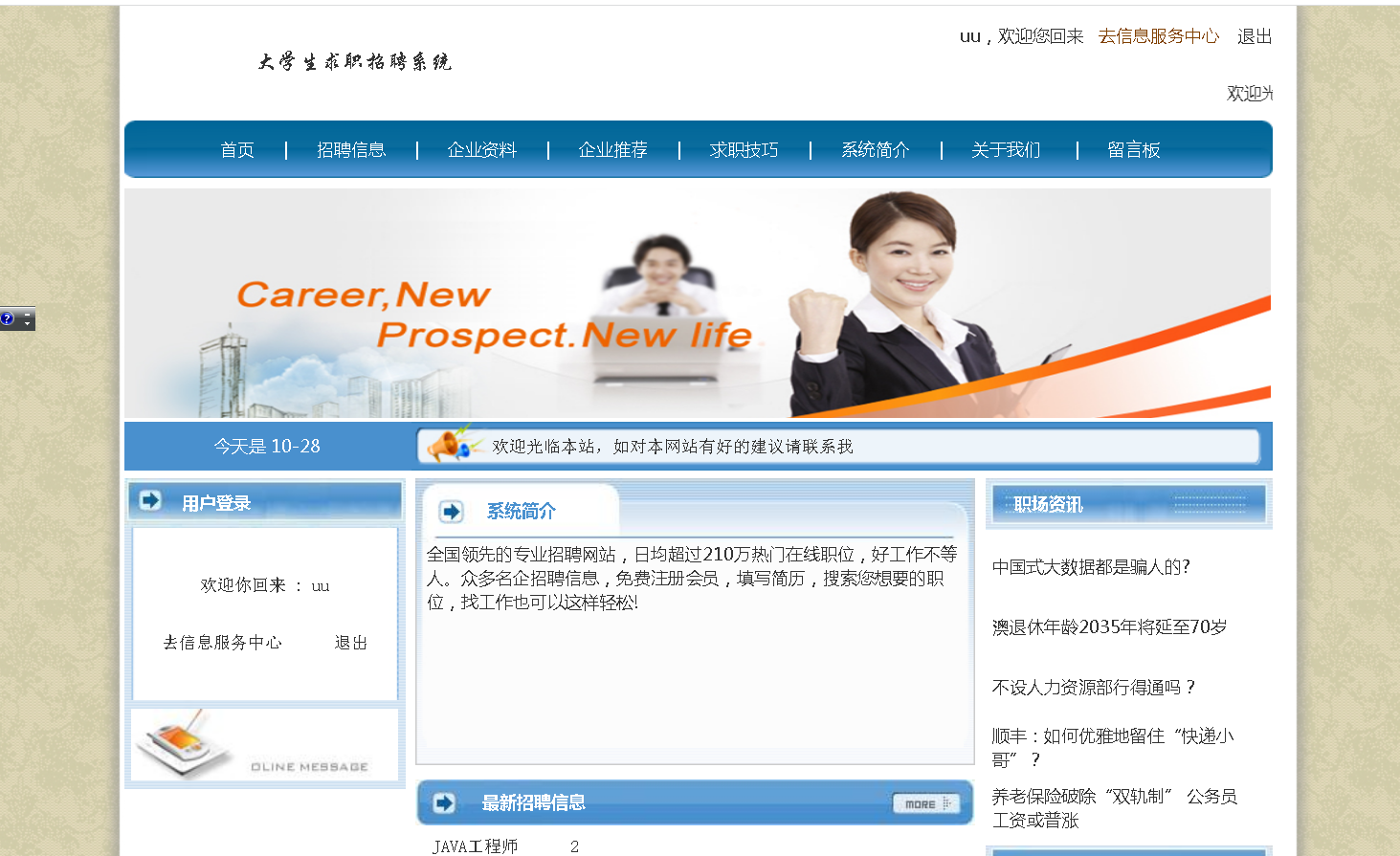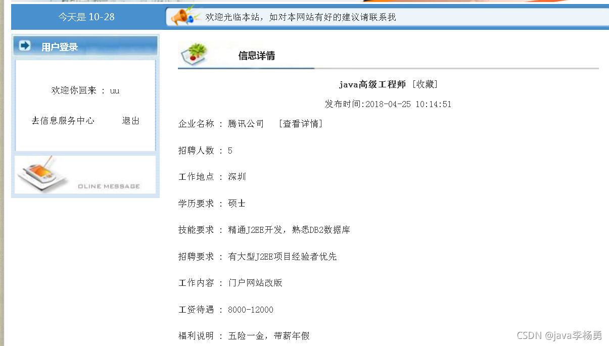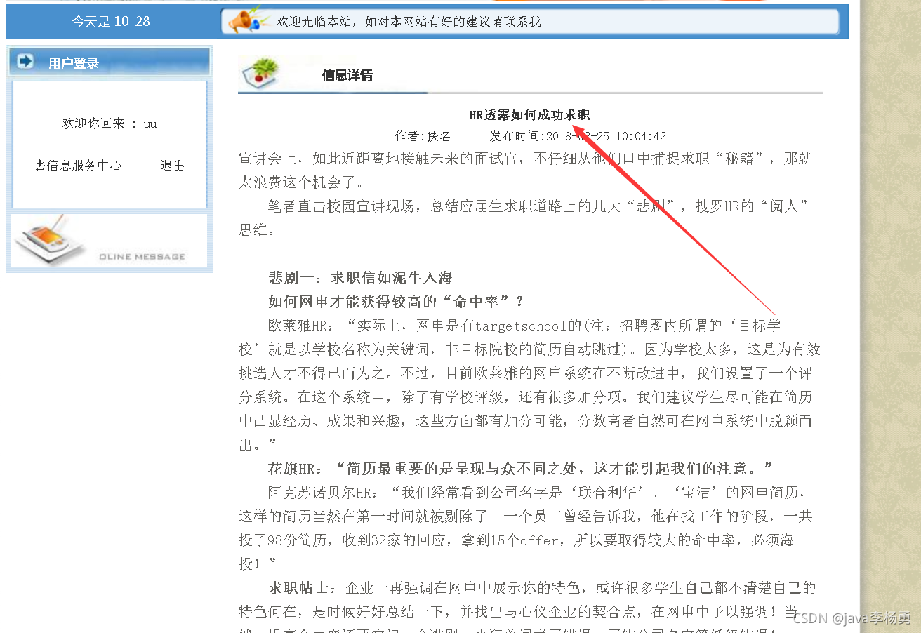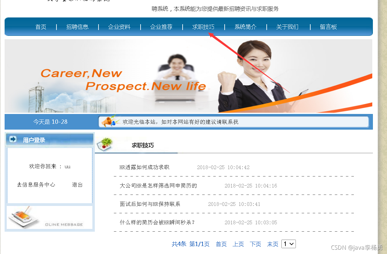 都能满足你的需求。原始Jsp、SSM、SpringBoot、以及HTML+CSS+JS页面设计, web大学生网页设计作业源码等等都可以参考得到解决。话不多说直接拿一个学生求职招聘管理系统来举例