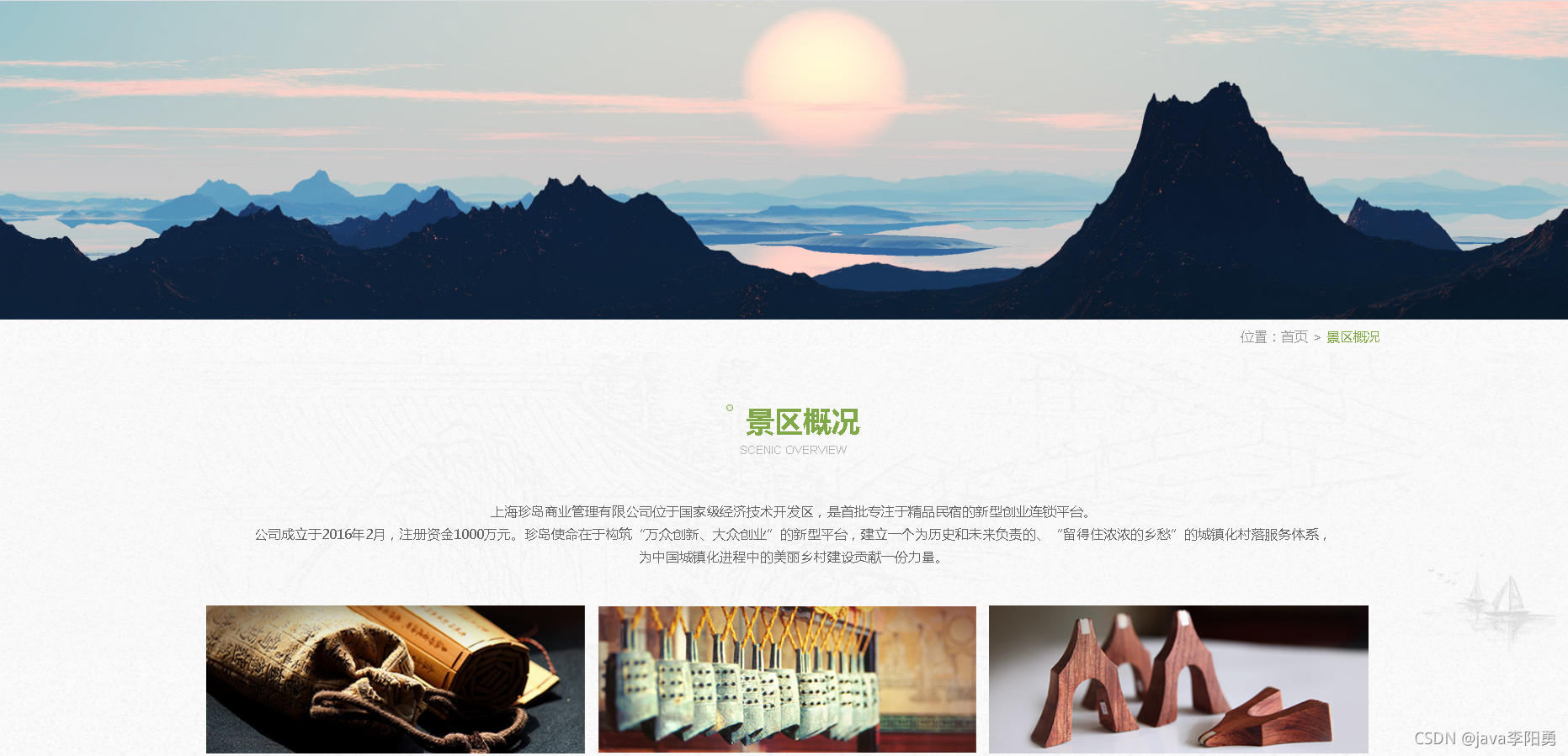 <html><head><meta charset="utf-8"><meta http-equiv="X-UA-Compatible" content="IE=edge" /><title>珍岛集团</title><meta name="keywords" content="珍岛集团"><meta name="description" content="珍岛集团"><meta name="viewport" content="width=device-width, initial-scale=1, maximum-scale=1, user-scalable=no"><link rel="shortcut icon" href="images/favicon.ico"><!-- include main css --><link rel="stylesheet" type="text/css" href="css/slick.css" /><link rel="stylesheet" type="text/css" href="css/bootstrap.css" /><link rel="stylesheet" type="text/css" href="css/jquery.mmenu.all.css" /><link rel="stylesheet" type="text/css" href="css/style.css" /><link href="font-awesome-4.5.0/css/font-awesome.min.css" rel='stylesheet' type='text/css' media="all" /><link rel="stylesheet" type="text/css" href="css/animate.css" /></head><body><div><!--header--><header class="header home_p"><div class="container"><div class="logo"><a href="index.html"><img src="images/logo.png" alt="" /></a></div><a href="#mmenu" class="phone-nav"><i class="fa fa-list"></i></a><div class="logo_right"><nav class="nav"><ul><li><a href="index.html" class="active">首页</a></li><li><a href="scenic_overview.html">景区概况</a></li><li><a href="court_travel.html">文苑之旅</a><ul><li><a href="court_travel.html">茶艺中心</a></li><li><a href="court_travel.html">万竹林海</a></li><li><a href="court_travel.html">创意中心</a></li><li><a href="court_travel.html">花草园艺</a></li></ul></li><li><a href="comfortable.html">舒雅住宅</a></li><li><a href="news.html">新闻动态</a><ul><li><a href="news.html">公司新闻</a></li><li><a href="news.html">行业新闻</a></li></ul></li><li><a href="feedback.html">留言中心</a></li><li><a href="contact.html">联系我们</a></li></ul></nav><div class="search"><span class="sea_x"><input type="" name="" id="" placeholder="请输入关键词"><i class="fa fa-search"></i> </span><span class="y_z"><a href="" class="zh active">中</a><a href="" class="en">En</a></span></div></div></div></header><!--banner start--><section class="banner"><div><a href="index.html"><img src="images/banner1.jpg" alt=""></a></div><div><a href="index.html"><img src="images/banner1.jpg" alt=""></a></div><div><a href="index.html"><img src="images/banner1.jpg" alt=""></a></div></section><!--banner end--><div class="jqgk"><div class="contai"><div class="top_tit"><span class="span1"><a href="scenic_overview.html">景区概况</a></span><br /><span class="span2">SCENIC OVERVIEW</span></div><p class="wow bounceIn">上海珍岛商业管理有限公司位于国家级经济技术开发区,是首批专注于精品民宿的新型创业连锁平台。<br /> 公司成立于2016年2月,注册资金1000万元。珍岛使命在于构筑“万众创新、大众创业”的新型平台,建立一个为历史和未来负责的、“留得住浓浓的乡愁”的城镇化村落服务体系,<br /> 为中国城镇化进程中的美丽乡村建设贡献一份力量。</p><div class="xia_x"><span class="img"></span></div></div></div><div class="wyzl"><div class="top_tit"><span class="span1"><a href="court_travel.html">文苑之旅</a></span><br /><span class="span2">COURT TRAVEL</span></div><ul class="clearfix"><li class="wow bounceIn"><a href="court_travel.html"><img src="images/home_1.png" alt="" class="vcenter" /><i></i></a><a href="court_travel.html">万竹林海(一)</a></li><li class="wow bounceIn"><a href="court_travel.html"><img src="images/home_2.png" alt="" class="vcenter" /><i></i></a><a href="court_travel.html">万竹林海(二)</a></li><li class="wow bounceIn"><a href="court_travel.html"><img src="images/home_3.png" alt="" class="vcenter" /><i></i></a><a href="court_travel.html">万竹林海(三)</a></li></ul></div><!--wyzl end--><div class="syzz"><div class="top_tit"><span class="span1"><a href="scenic_overview.html">舒雅住宅</a></span><br /><span class="span2">COMFORTABLE RESIDENTIAL</span></div><div class="syzz_con clearfix"><div class="left"><div><a href="comfortable.html"><img src="images/syzz_1.png" alt="" / class="vcenter"> <i></i></a></div><div><a href="comfortable.html"><img src="images/syzz_1.png" alt="" / class="vcenter"> <i></i></a></div><div><a href="comfortable.html"><img src="images/syzz_1.png" alt="" / class="vcenter"> <i></i></a></div></div><div class="right"><img src="images/fang.png" alt="" /><div class="fang_t"><span>客 |</span><span>房 |</span><span>介 |</span><span>绍</span></div><div class="fang_c">桃花林苑中有各式客房100套,房型分为中式、现代两个类型,以满足客人的不同需求…</div><div class="pr_ne clearfix"><span class="pr">上一个</span><span class="ne">下一个</span></div></div></div><div class="xia_x"><span class="img"></span></div></div><!--syzz end--><div class="home_news"><div class="news_con"><div class="top_tit"><span class="span1"><a href="news.html">新闻动态</a></span><br /><span class="span2">NEWS</span></div><ul><li class="clearfix wow bounceIn"><div class="news_left"><a href="news.html">暑假去哪玩?桃花苑天地避暑甚好!</a><p>暑期近在眼前,还在犹豫带孩子去哪儿玩吗?炎热的夏天,一颗躁动的心,背上收拾好的背包,走遍大好河山 ,感受大千世界,还不如隐居室外桃源桃花苑天地精品。少一些城市的喧嚣,回归大自然的清新脱俗,来一场说走就走的夏日之旅吧。</p></div><div class="news_right"><span>07.21</span><time>2020</time></div></li><li class="clearfix wow bounceIn"><div class="news_left"><a href="news.html">花落流水春又去</a><p>春暖花开,桃花苑天地精品大咖云集,活动丰富。不仅有适合小朋友们的春游活动,有适合老年朋友的喝茶加棋牌, 还有书法大咖们的加盟,乃至电视真人秀节目的拍摄。这可把桃花宝宝们忙坏了,不过没关系,累并快乐着,桃花宝宝非常欢迎大家的到来……</p></div><div class="news_right"><span>05.25</span><time>2020</time></div></li><li class="c