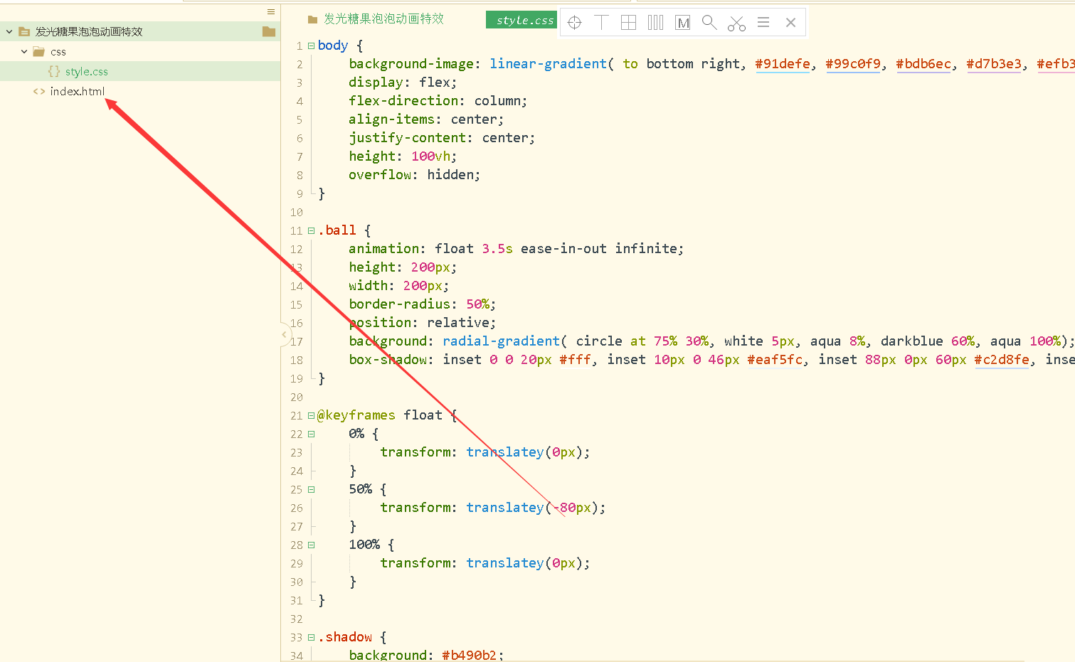 <html lang="en"><head><meta charset="UTF-8"><title>发光糖果泡泡动画特效</title><link rel="stylesheet" href="css/style.css"></head><body><div class="ball"></div><div class="shadow"></div></body></html>源码获取