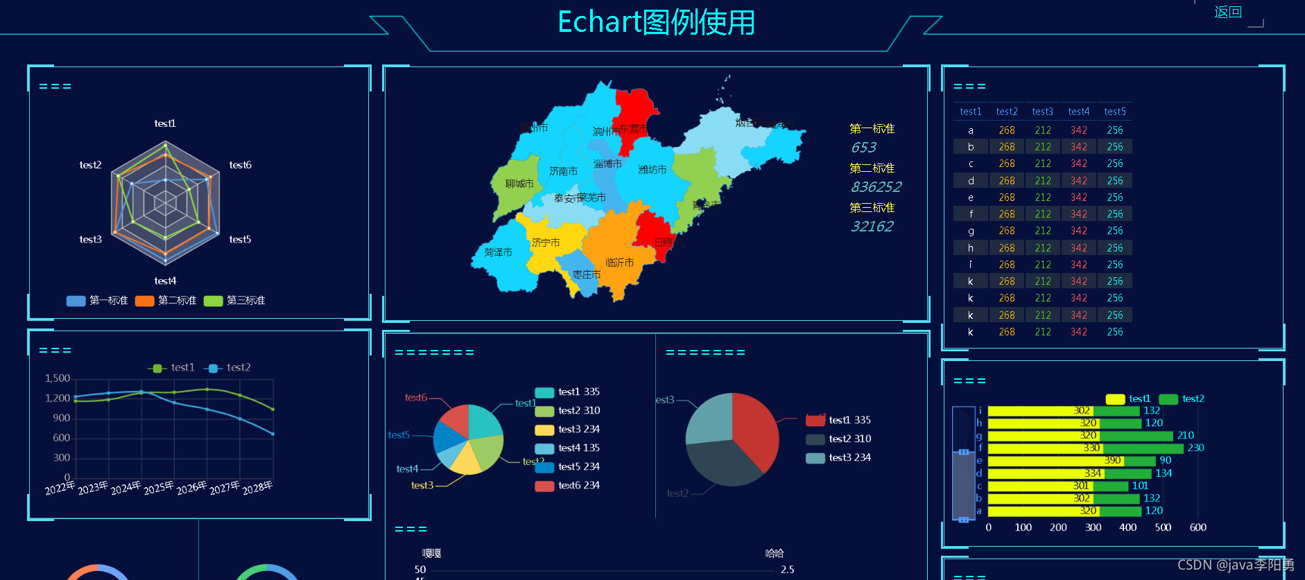 </head><body><!--头部--><div class="header">Echart图例使用<a href="javascript:;" class="a-access"><button class="button type1">返回</button></a></div><!--主体--><div class="main clearfix"><div class="main-left"><div class="border-container"><div class="name-title">===</div><div id="radar"></div><span class="top-left border-span"></span><span class="top-right border-span"></span><span class="bottom-left border-span"></span><span class="bottom-right border-span"></span></div><div class="border-container"><div class="name-title">===</div><div id="graduateyear"></div><ul class="three-pie clearfix"><li><div id="sexrate"></div></li><li><div id="householdrate"></div></li></ul><span class="top-left border-span"></span><span class="top-right border-span"></span><span class="bottom-left border-span"></span><span class="bottom-right border-span"></span></div></div><div class="main-middle"><div class="border-container"><div id="mapadd"></div><div class="number-show"><ul><li><span class="span-name">第一标准</span></li><li><span class="span-number-show">653</span></li><li><span class="span-name">第二标准</span></li><li><span class="span-number-show">836252</span></li><li><span class="span-name">第三标准</span></li><li><span class="span-number-show">32162</span></li></ul></div><span class="top-left border-span"></span><span class="top-right border-span"></span><span class="bottom-left border-span"></span><span class="bottom-right border-span"></span></div><div class="border-container"><ul class="teacher-pie clearfix"><li><div class="name-title">=======</div><div id="courserate"></div></li><li><div class="name-title">=======</div><div id="professionrate"></div></li></ul><div class="name-title">===</div><div id="changedetail"></div><span class="top-left border-span"></span><span class="top-right border-span"></span><span class="bottom-left border-span"></span><span class="bottom-right border-span"></span></div></div><div class="main-right"><div class="border-container"><div class="name-title">===</div><table class="table table-kingdargen"><thead><tr><th>test1</th><th>test2</th><th>test3</th><th>test4</th><th>test5</th></tr></thead><tbody><tr><td>a</td><td>268</td><td>212</td><td>342</td><td>256</td></tr><tr><td>b</td><td>268</td><td>212</td><td>342</td><td>256</td></tr><tr><td>c</td><td>268</td><td>212</td><td>342</td><td>256</td></tr><tr><td>d</td><td>268</td><td>212</td><td>342</td><td>256</td></tr><tr><td>e</td><td>268</td><td>212</td><td>342</td><td>256</td></tr><tr><td>f</td><td>268</td><td>212</td><td>342</td><td>256</td></tr><tr><td>g</td><td>268</td><td>212</td><td>342</td><td>256</td></tr><tr><td>h</td><td>268</td><td>212</td><td>342</td><td>256</td></tr><tr><td>i</td><td>268</td><td>212</td><td>342</td><td>256</td></tr><tr><td>k</td><td>268</td><td>212</td><td>342</td><td>256</td></tr><tr><td>k</td><td>268</td><td>212</td><td>342</td><td>256</td></tr><tr><td>k</td><td>268</td><td>212</td><td>342</td><td>256</td></tr><tr><td>k</td><td>268</td><td>212</td><td>342</td><td>256</td></tr></tbody></table><span class="top-left border-span"></span><span class="top-right border-span"></span><span class="bottom-left border-span"></span><span class="bottom-right border-span"></span></div><div class="border-container"><div class="name-title">===</div><div id="juniorservice"></div><span class="top-left border-span"></span><span class="top-right border-span"></span><span class="bottom-left border-span"></span><span class="bottom-right border-span"></span></div><div class="border-container"><div class="name-title">===</div><div id="edubalance"></div><span class="top-left border-span"></span><span class="top-right border-span"></span><span class="bottom-left border-span"></span><span class="bottom-right border-span"></span></div></div></div>