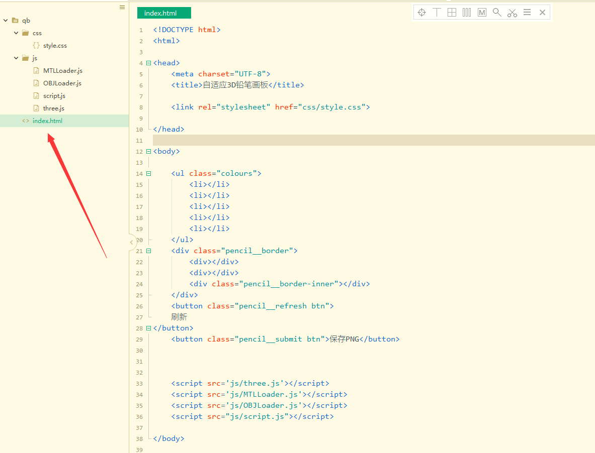 <html><head><meta charset="UTF-8"><title>自适应3D铅笔画板</title><link rel="stylesheet" href="css/style.css"></head><body><ul class="colours"><li></li><li></li><li></li><li></li><li></li></ul><div class="pencil__border"><div></div><div></div><div class="pencil__border-inner"></div></div><button class="pencil__refresh btn">刷新
